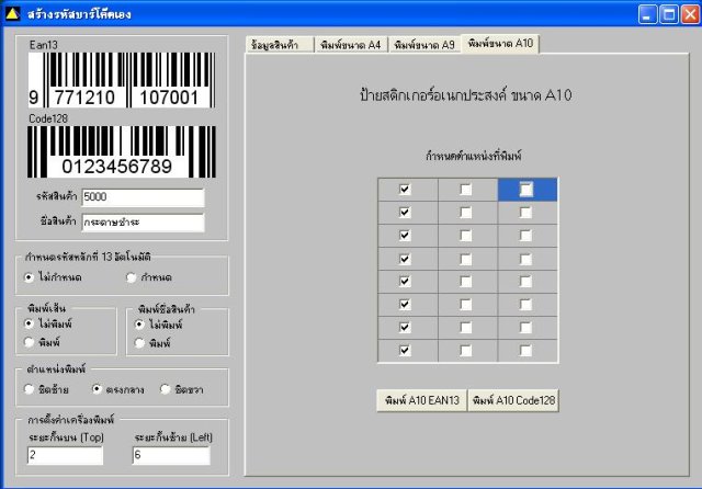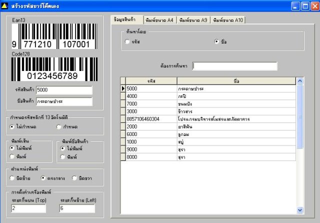 - ระบบพิมพ์บาร์โค๊ด รหัส EAN 13 หรือ รหัส CODE 128