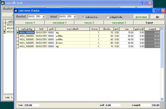 - รายงานซื้อ รายงานขาย กำหนดช่วงเวลาได้